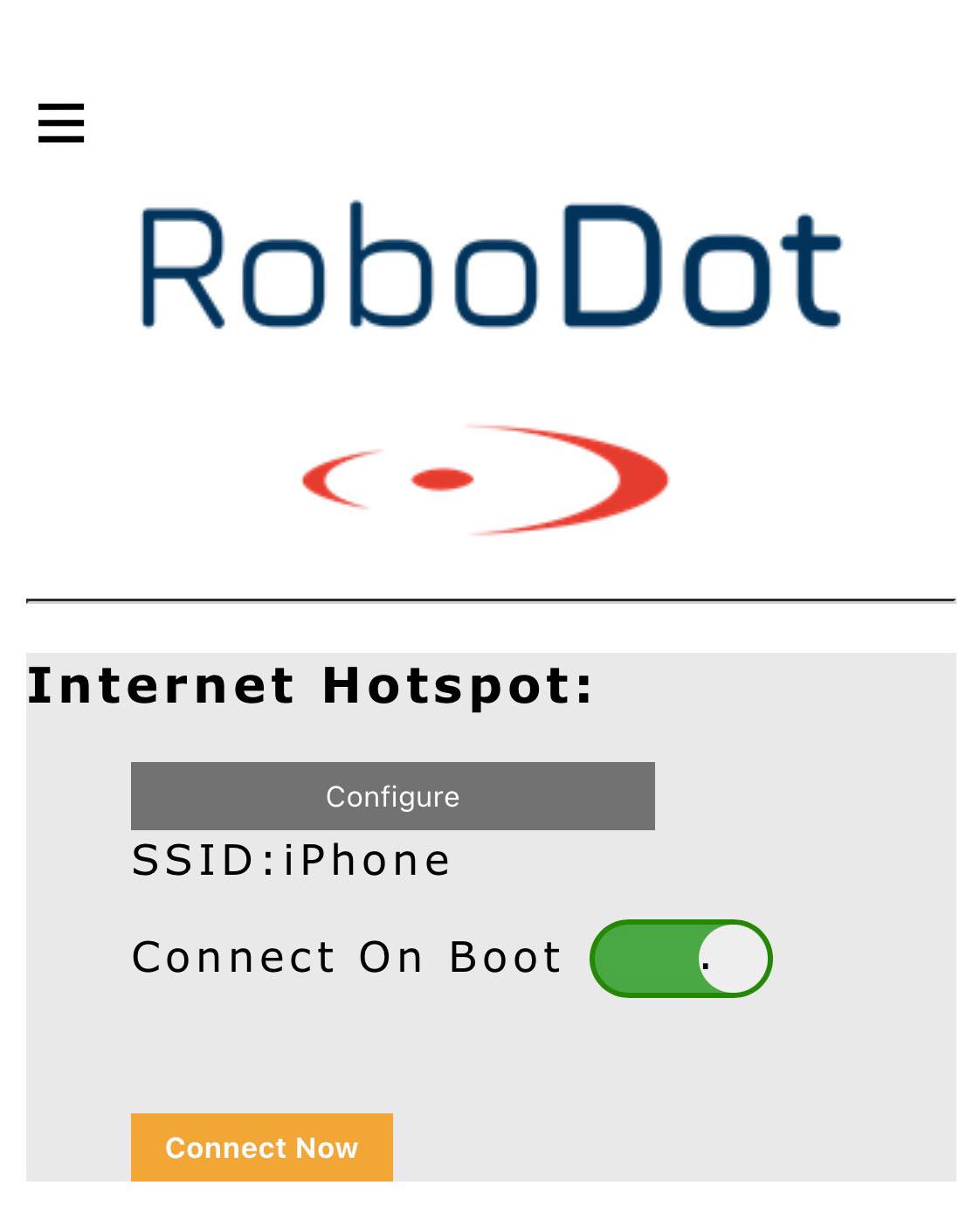 Connect via PC or smartphone to Wi-Fi access point RoboDot_### (where ### is the device's unique serial number)