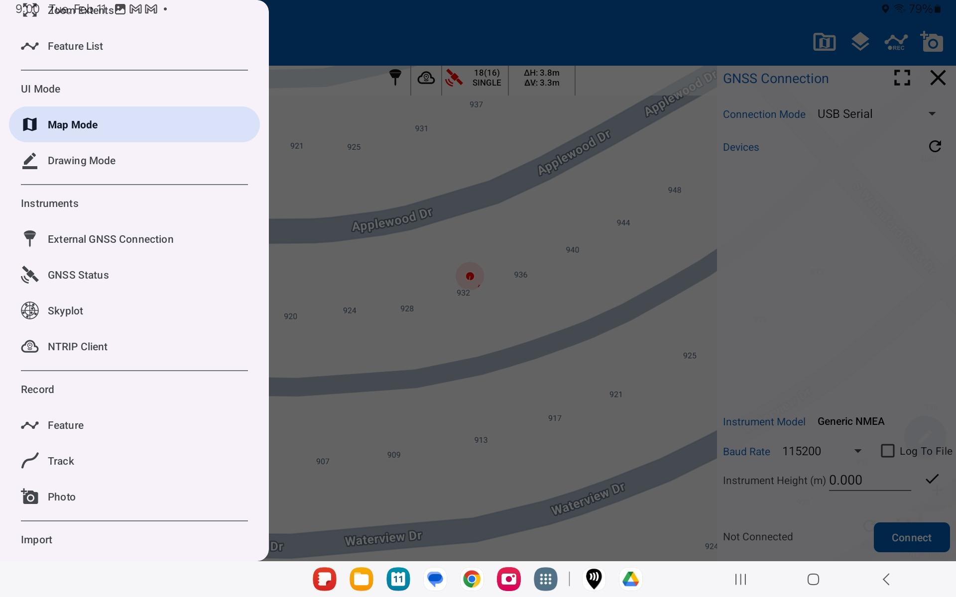 Unlike the iOS version, the Android version of SW Maps offers the flexibility of establishing a serial connection as well as Bluetooth Low Energy (BLE) for integrating with devices like RoboDot. This additional connection option often requires a USB-C to USB-C cable, allowing users to connect directly via USB Serial. Depending on your specific requirements, you can choose between the high-speed reliability of a serial connection or the convenience of wireless BLE. Choose the method that best aligns with your device compatibility and operational needs.
