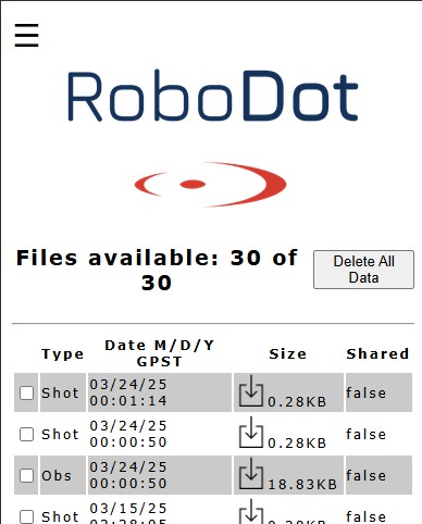 Rover Mode creates an additional .sht file which is a csv file with details on each point recorded. Learn more in the [Rover Mode](https://docs.robota.us/robodot-touch-user-guide/operating-modes/rover-mode) section.
